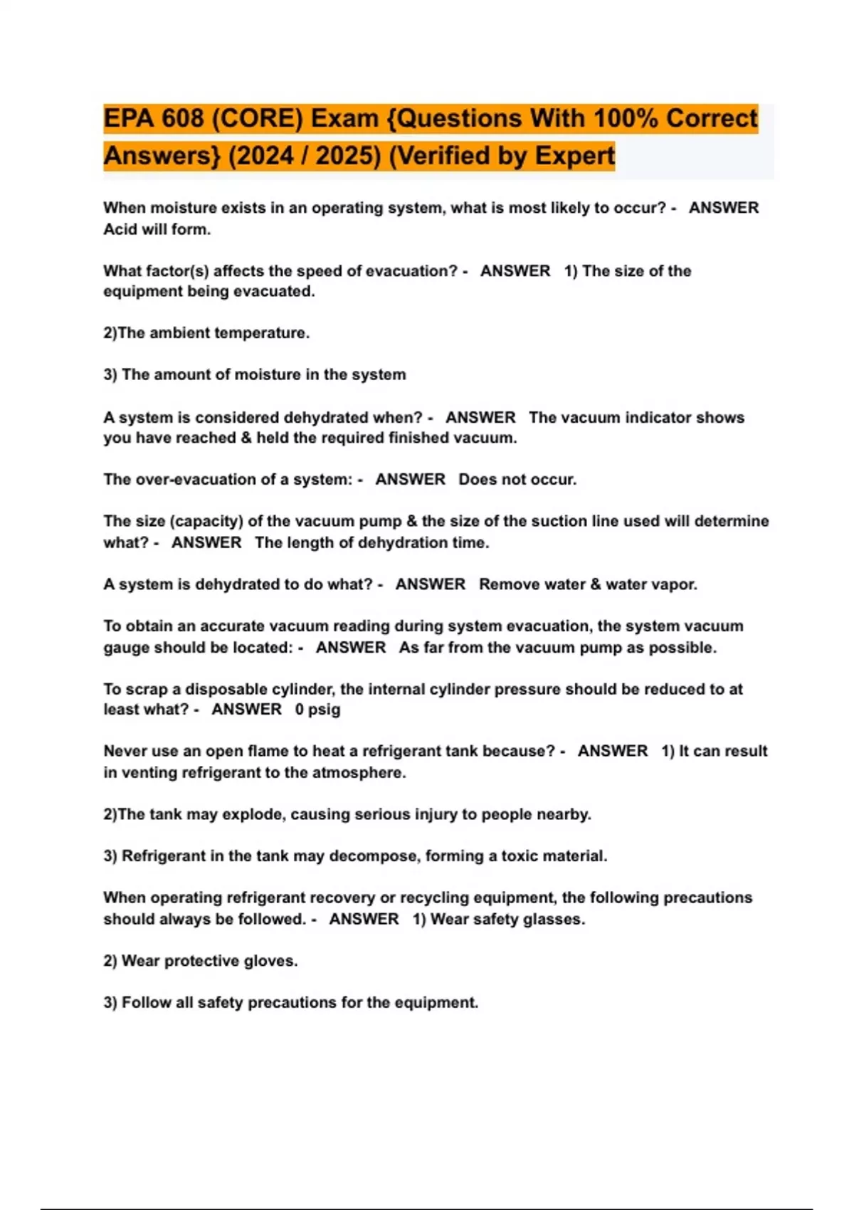 EPA 608 Certification Exam Updated with All Questions and 100 Correct , Free epa 608 core practice test is one of several quizzes provided for hvac techs preparing to take the certification examination for handling refrigerants.