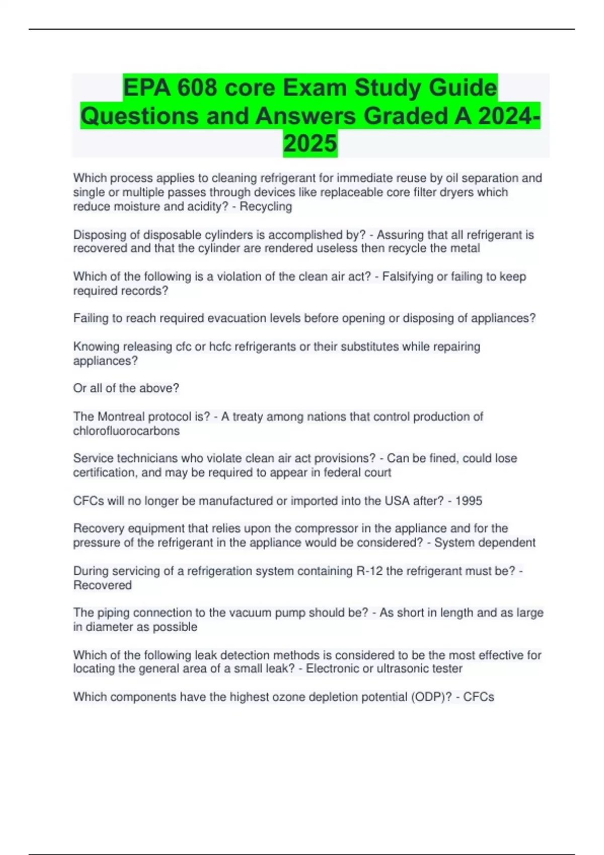 EPA 608 core Exam Study Guide Questions and Answers Graded A EPA 608 , There are 50+ questions for each section (core, type i, type ii and type iii) as well as a simulated.